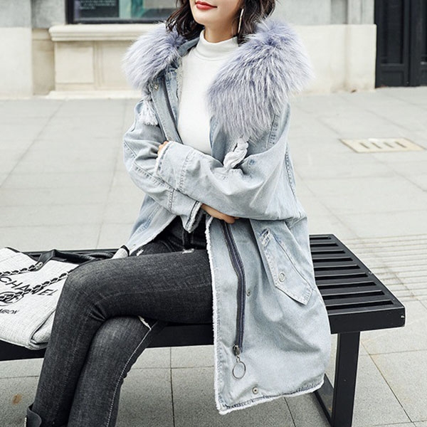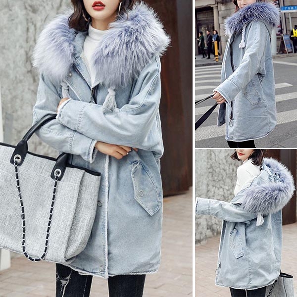 When the chilly season hits,you can slip into this denim coat to keep yourself warm. The faux fur spliced