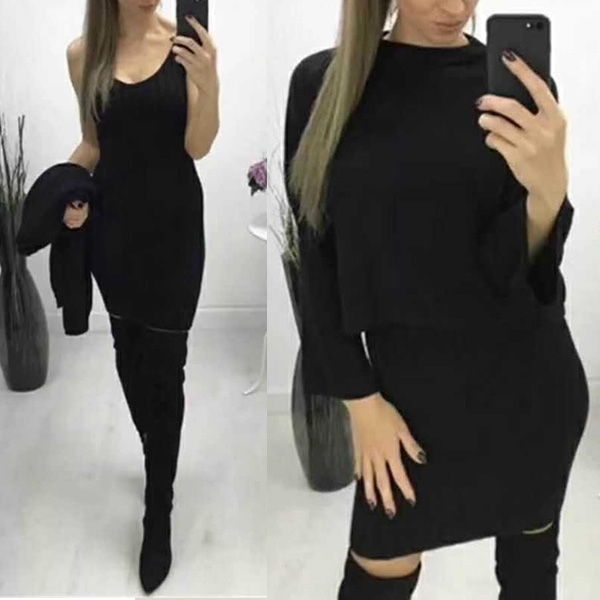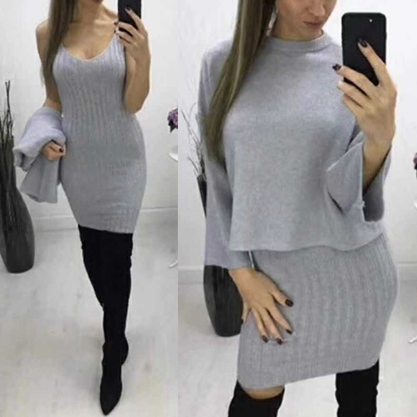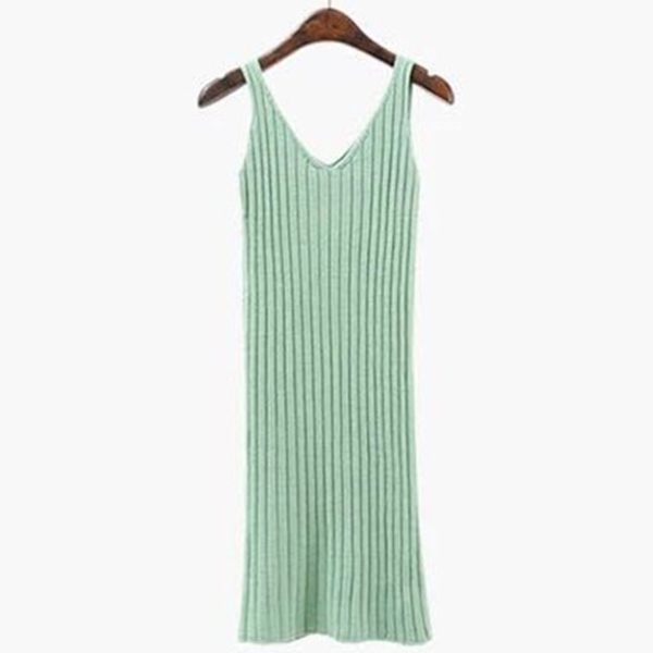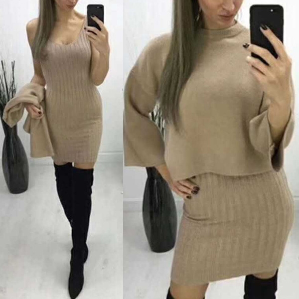 sleeve round neck knit top and a sleeveless v-neck knit dress,this two-piece set can make you stay