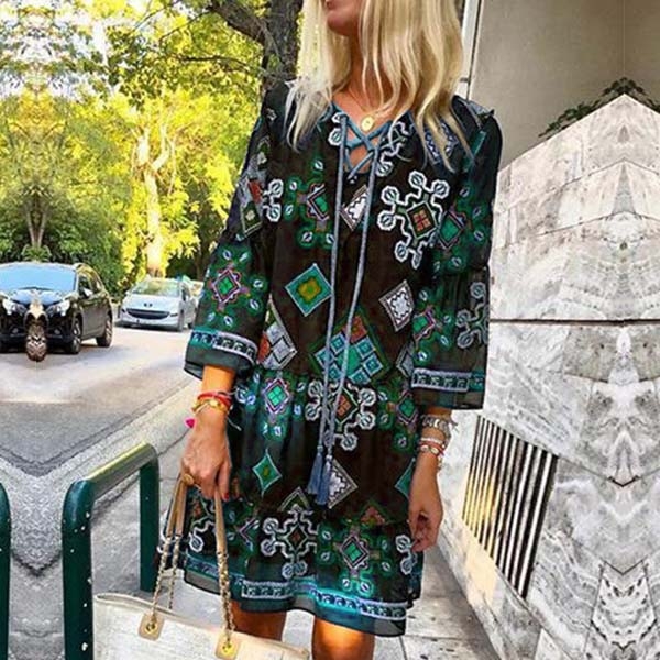 printed details,with long sleeve,lace-up v-neck and a loose silhouette,this piece can ensure you a