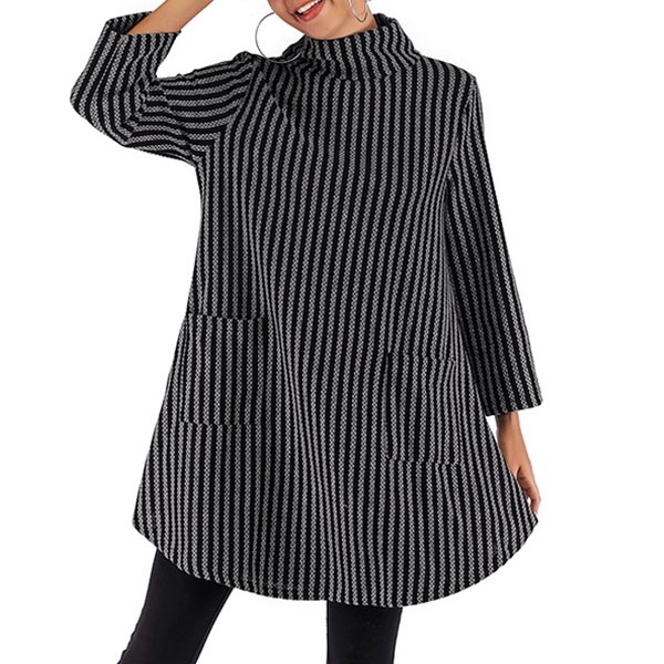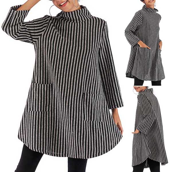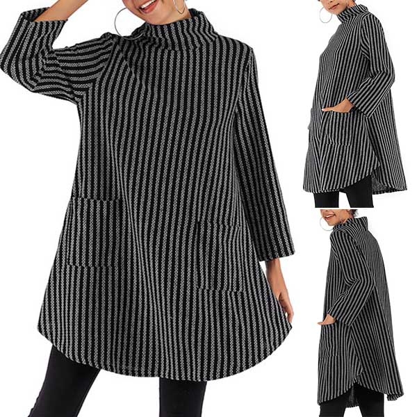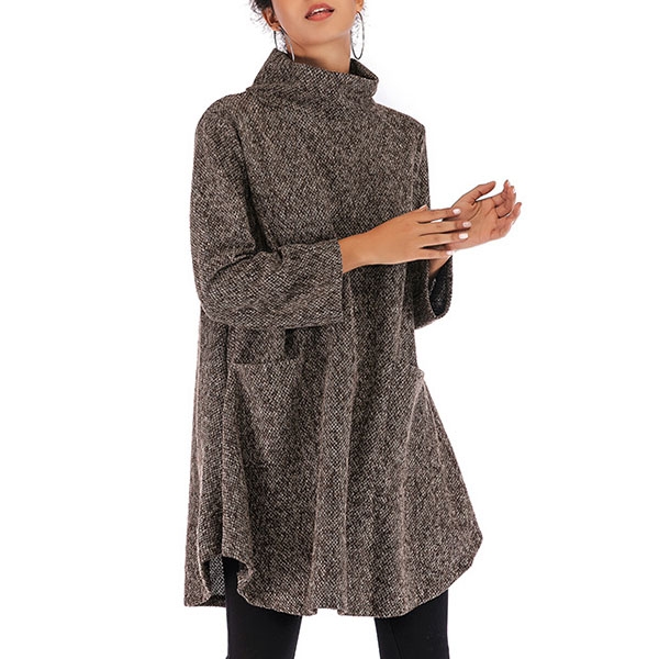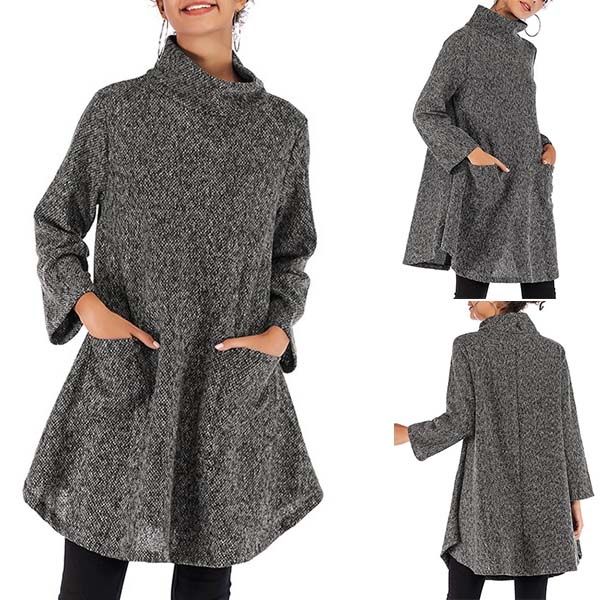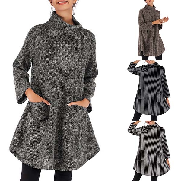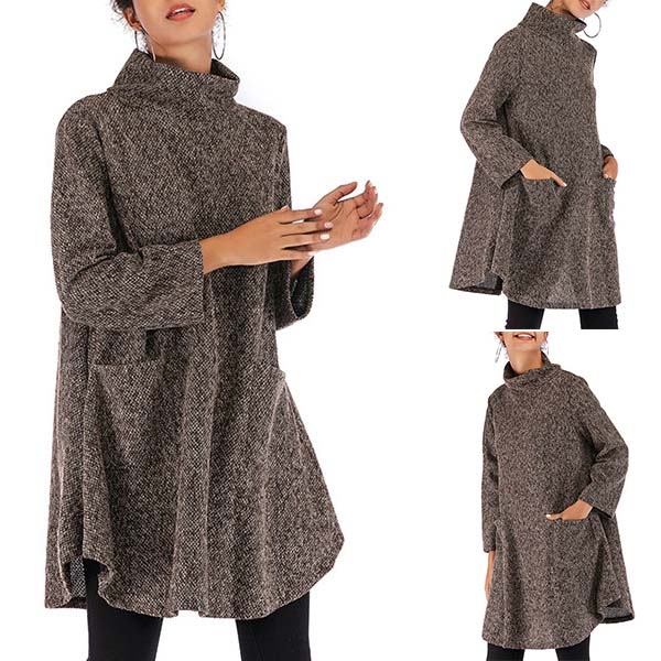 A perfect combination of cozy and style,this knit dress is your perfect choice on your lazy days. Finished with long sleeve,mock neck and a loose