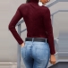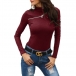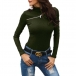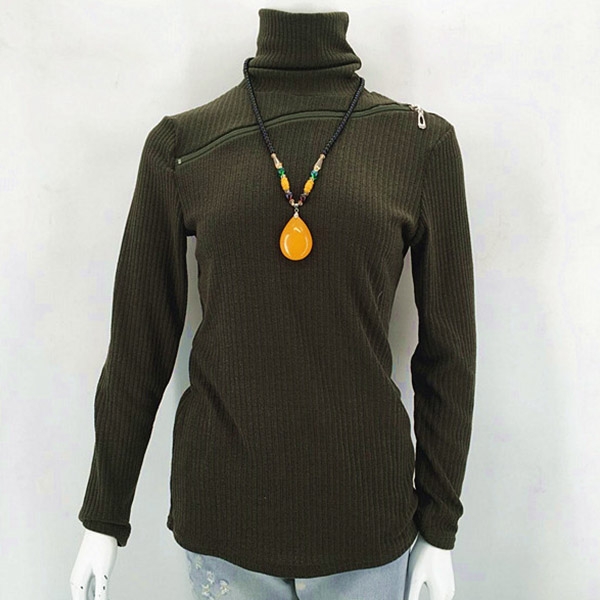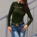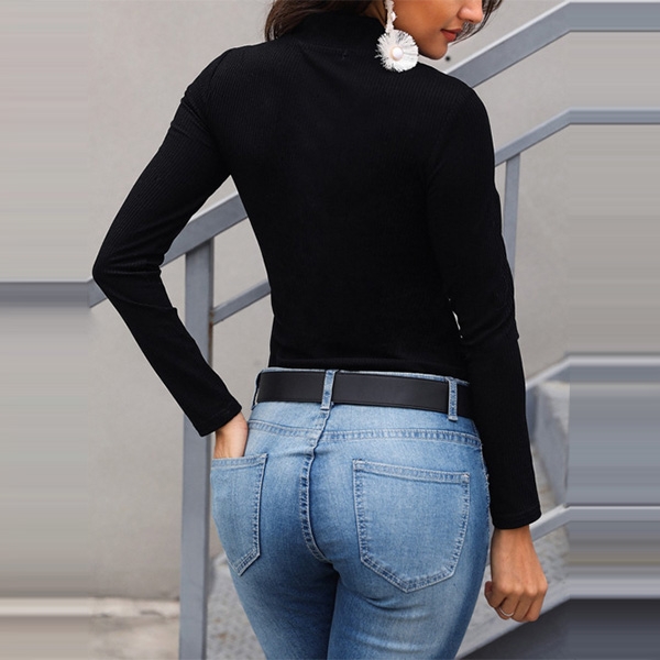 This t-shirt comes with a solid color,accompanied with long sleeve,mock neck and a fit silhouette,