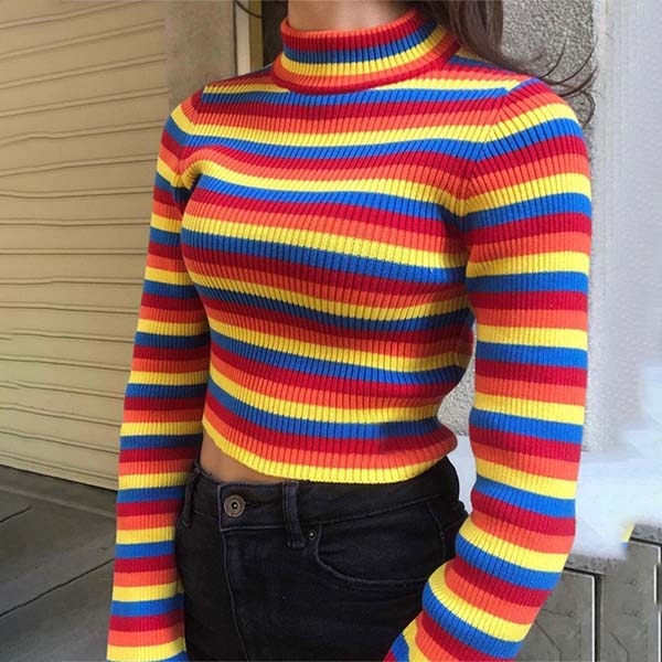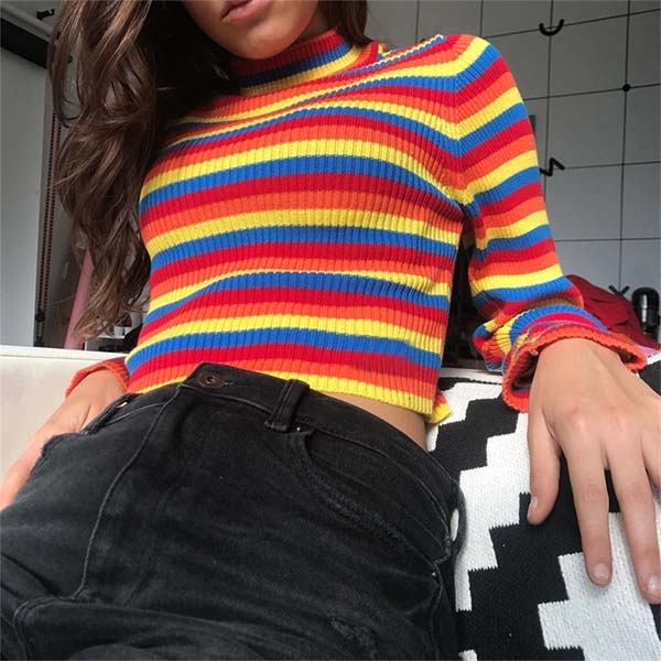 Den regnbågsrandiga designen gör att denna pjäs ser så iögonfallande och attraktiv ut. Avslutade med