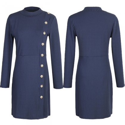 It comes with a solid color,finished with long sleeve and mock neck design,the side buttons design will