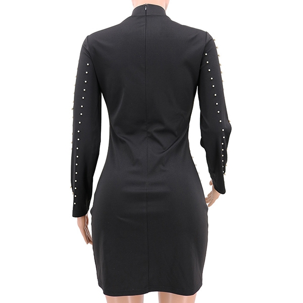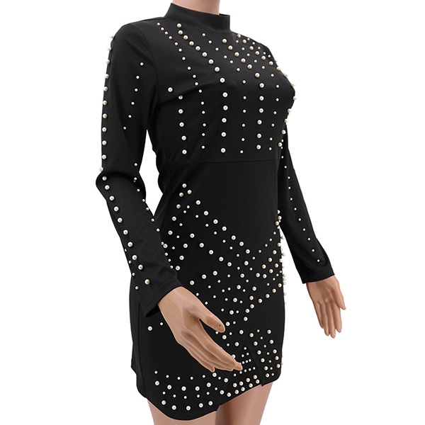 mock neck and a tight silhouette,this dress can showcase your perfect curve,and the beaded