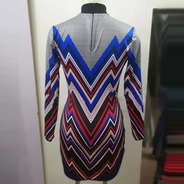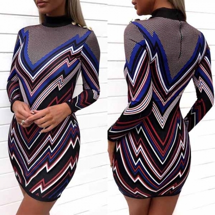 mock neck and a fit silhouette,this dress can showcase your slender figure,while the chic printed details will