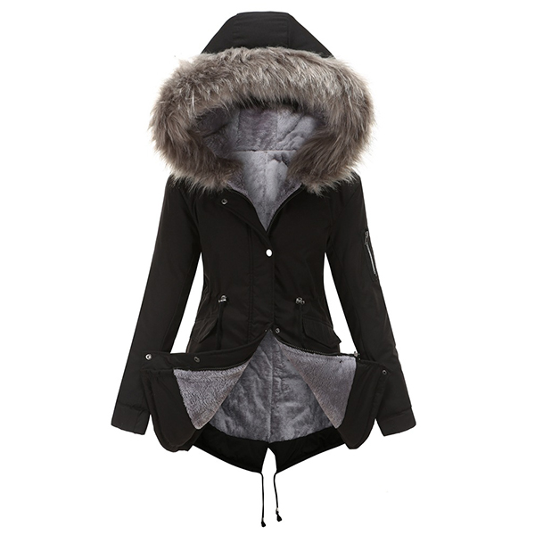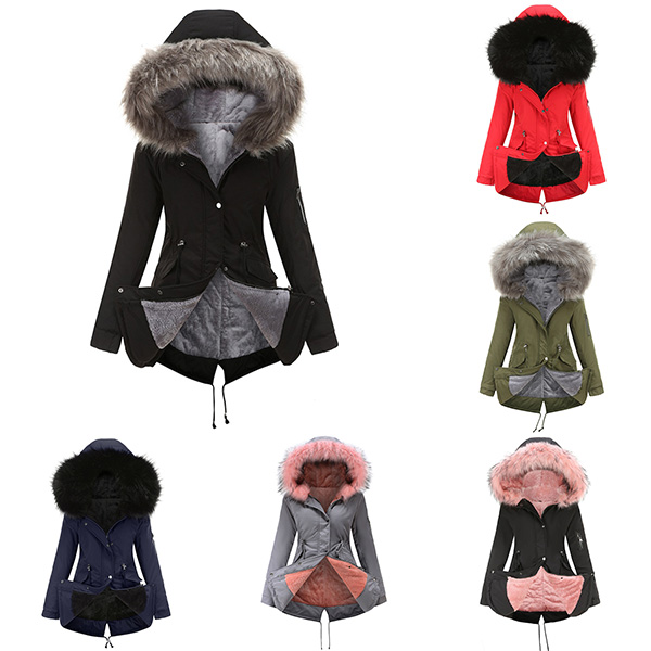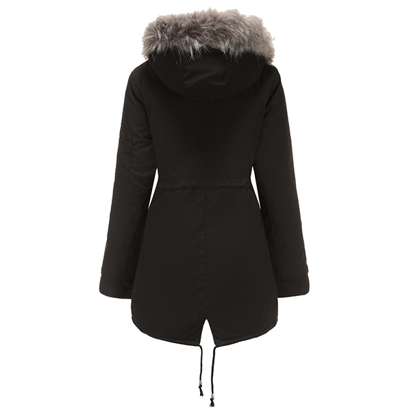 the plush lining and faux fur spliced hooded silhouette design can ensure your warmth and comfy.