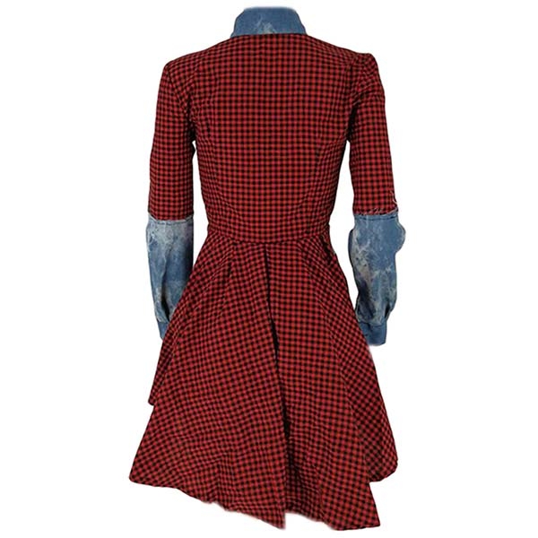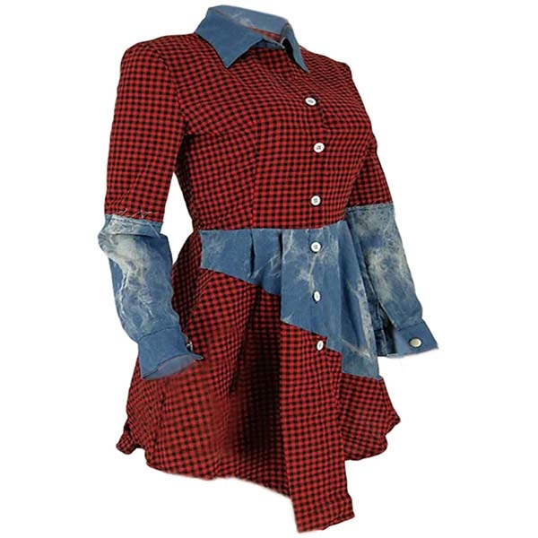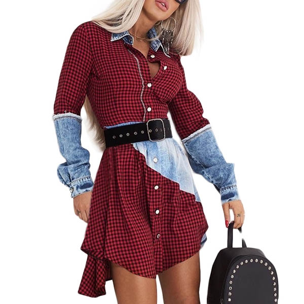 Designed with plaid element,the denim spliced design is the highlight,which makes this piece