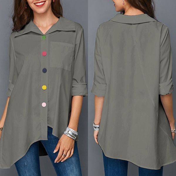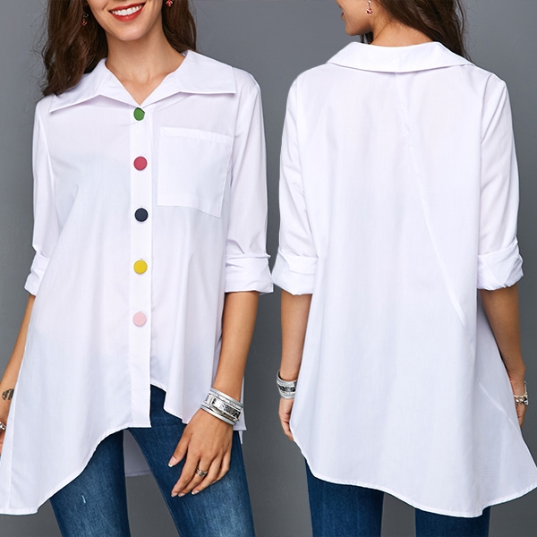 Finished with long sleeve,POLO collar and a chest patch pocket,the asymmetric hem and colorful