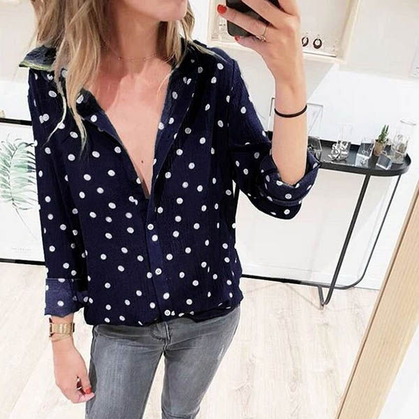 This shirt is designed with dots printed details,which makes it look so eye-catching and playful.