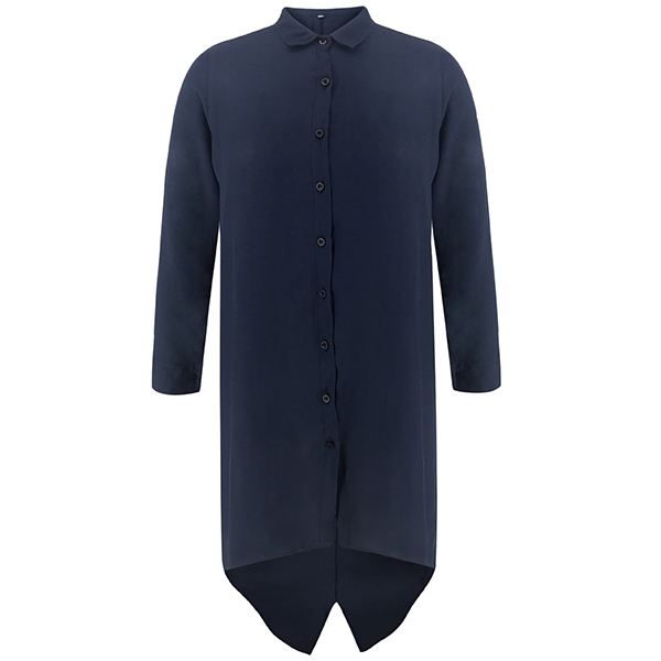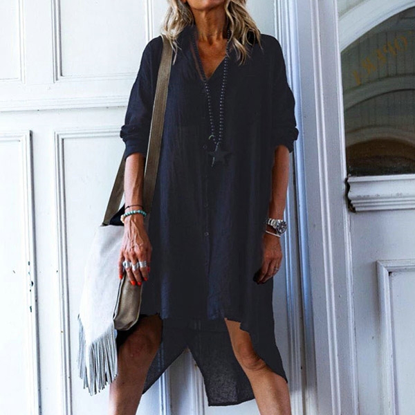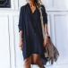 Fashion Long Sleeve POLO Collar High-low Hem Loose Dress