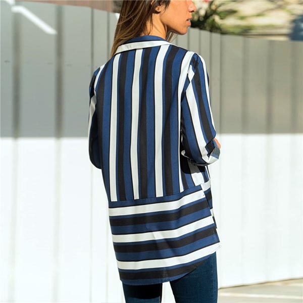 Start your wonderful day from this cozy yet stylish shirt! The irregular striped element design makes this