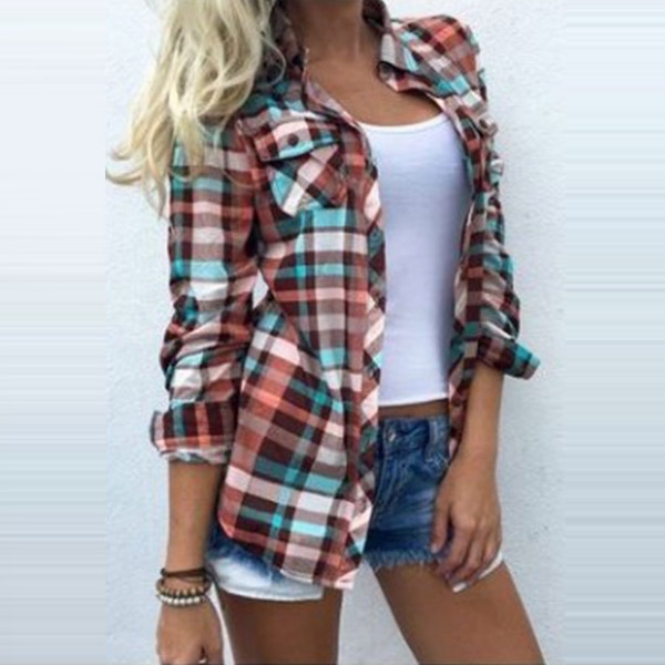 Make your wardrobe more complete by adding this plaid shirt. The colorful plaid element design makes