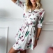 Fashion Long Sleeve POLO Collar Printed Shirt Dress