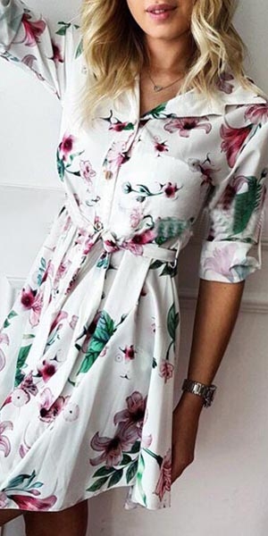 Give your daily style an instant boost with this shirt dress. The colorful printed details can make you look more eye-catching. Finished with long sleeve,POLO collar and waist strap design,this shirt dress can make any girl look effortlessly charming and beautiful.