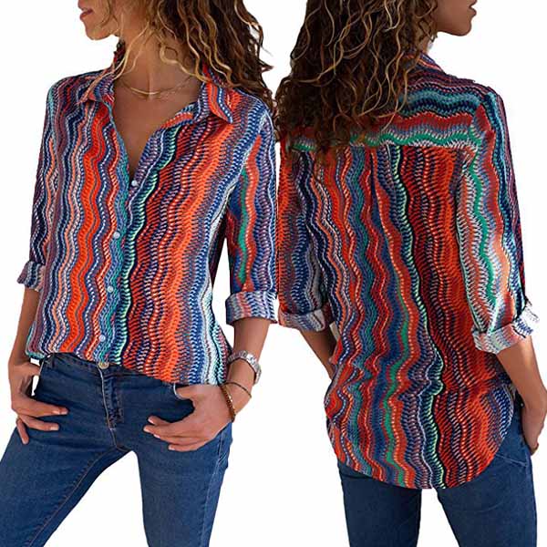 This shirt boasts chic and printed pattern,finished with long sleeve,POLO collar and single-breasted design,