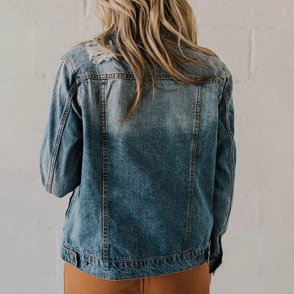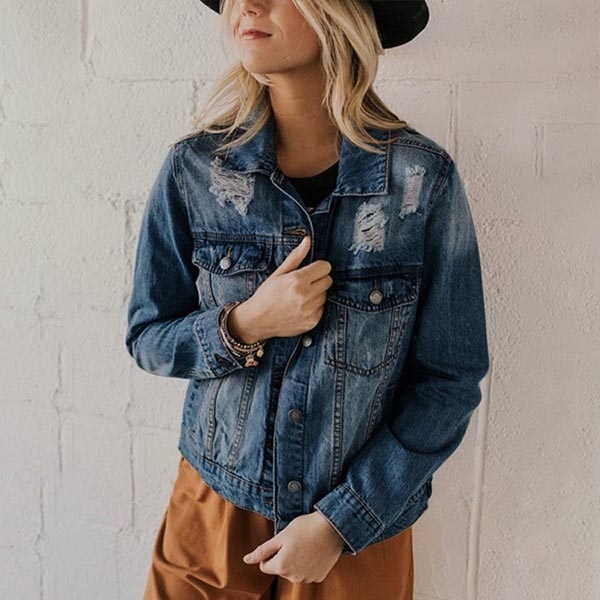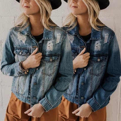 long sleeve and ripped details,classic and stylish. On some cool days,it can be your best partner.