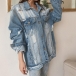 When the days get cold,this denim coat would be a wise choice. Its soft,breathable fabric and loose