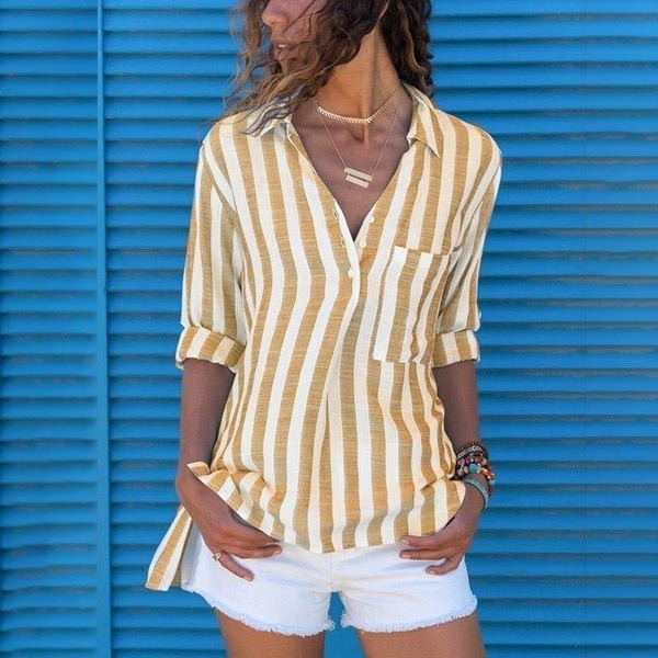 Like stripe element? Then this striped shirt might strike your mind. The long sleeve,POLO collar