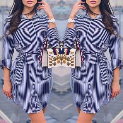 need to worry about what to wear for today's work. Designed with striped element,long sleeve and POLO
