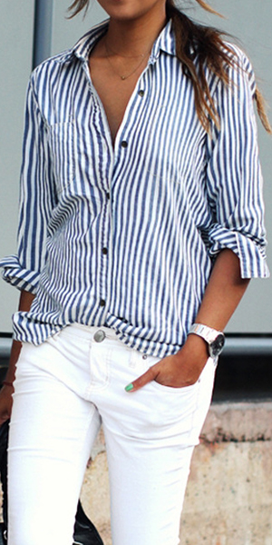 Shirt is a must-have item for every girl! If still not having one,then seize this chance. Striped style,