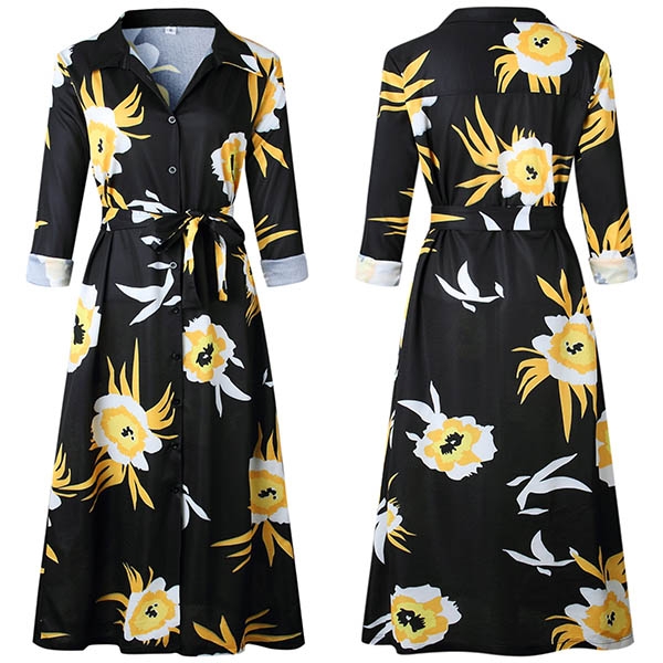and eye-catching printed pattern,this dress can help you win more eyes. Comes with a waist strap