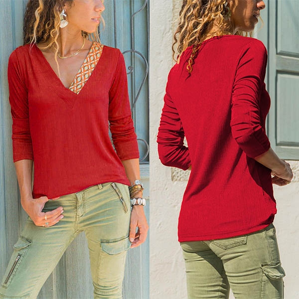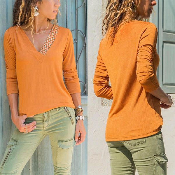 The soft and breathable fabric can ensure you a comfortable day,while the v-neck part with