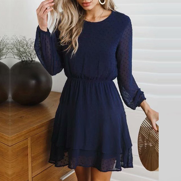 Finished with long sleeve,round neck and an elastic waist,this dress not only can display your chic and stylish