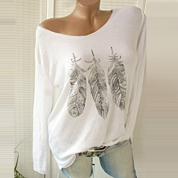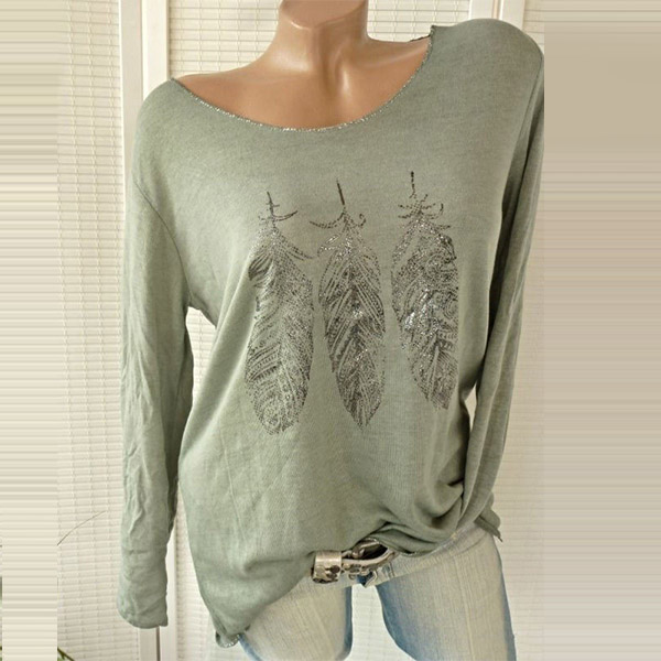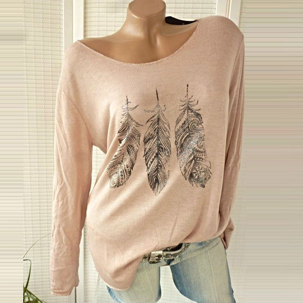 design style and cozy fabric make this piece popular. And the feather printed pattern