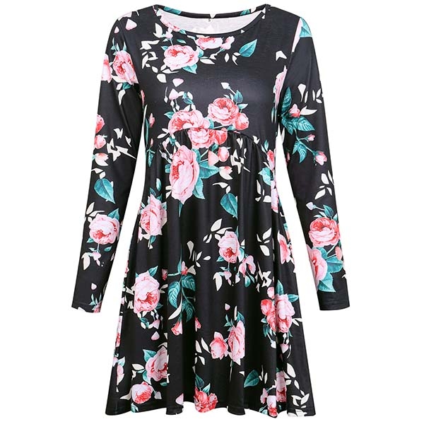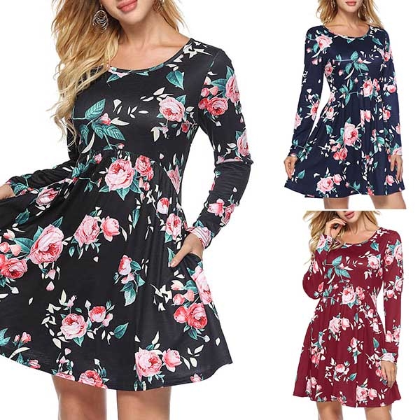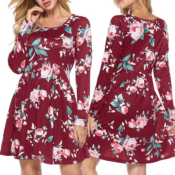 with long sleeve,round neck,high waist and A-line silhouette,this dress can give you an easy transition