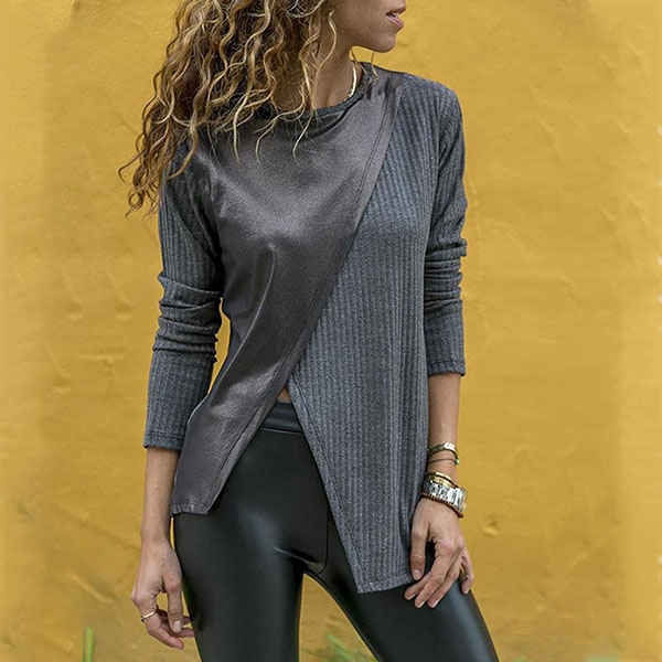 In the early autumn,this long sleeve t-shirt can be your perfect partner. Contrast color and irregular hem design
