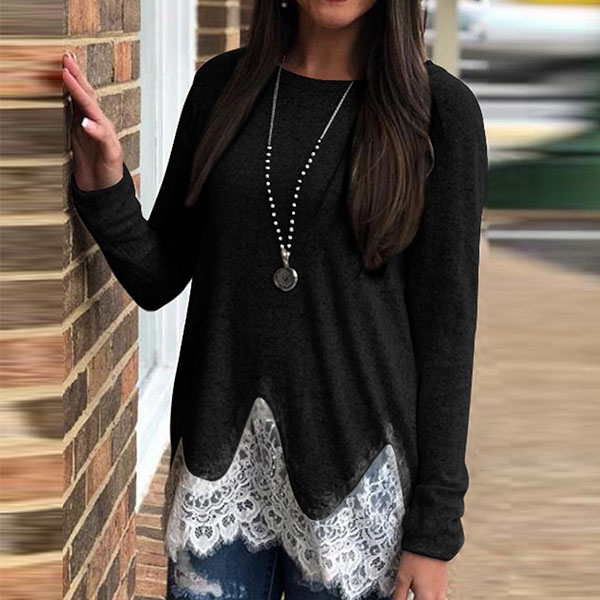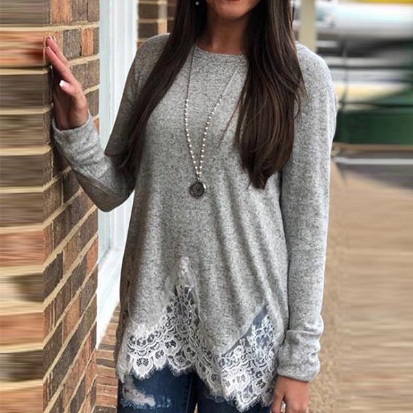soft fabric and a loose silhouette,this t-shirt can ensure you a comfortable day,while the lace spliced