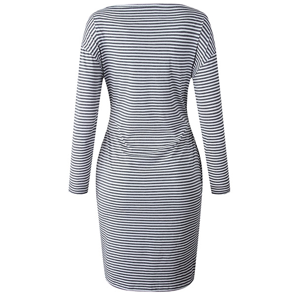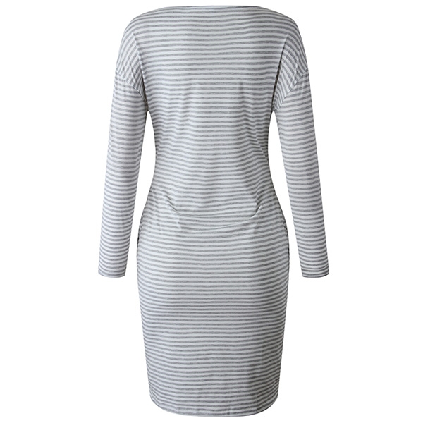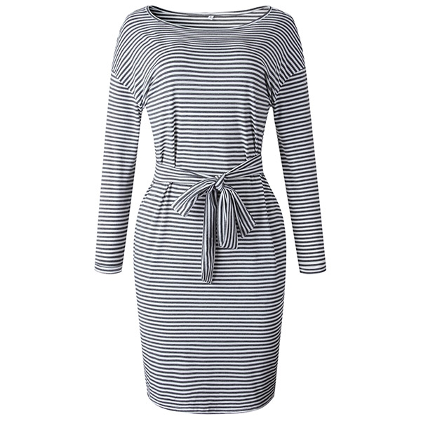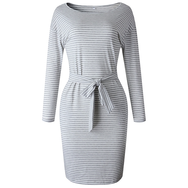 fashion taste? This striped dress is designed with long sleeve and round neck design,the lace-up