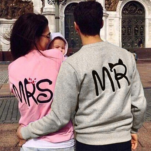 Mode långärmad rundhalsad bokstäver med tryckt par tröja