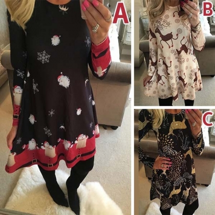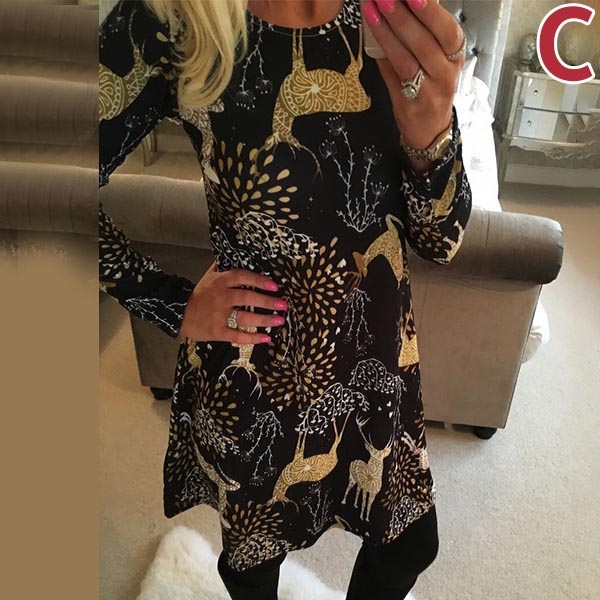 Greet the arrival of the Christmas Day with this wonderful dress! Its chic printed pattern design