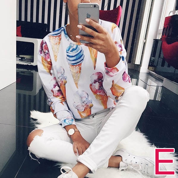 For a simple yet stylish weekend look,you can slip into this sweatshirt. The chic and eye-catching printed
