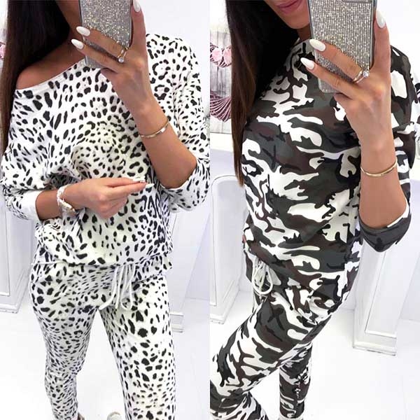The leopard print/camouflage print design make this two-piece set look so eye-catching. Including