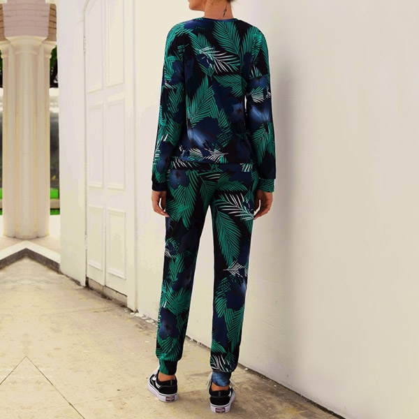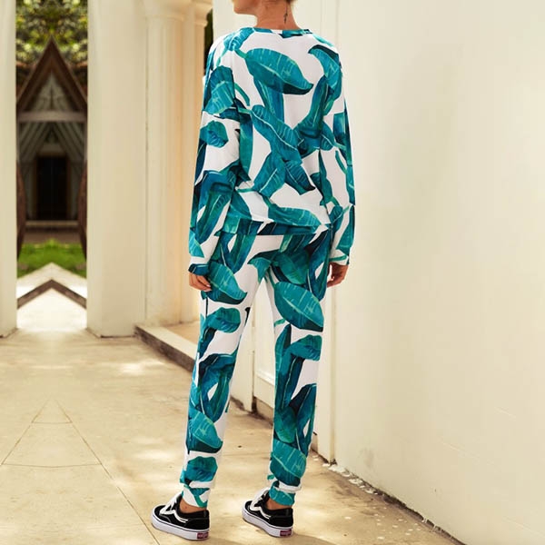 eye-catching printed details,this two-piece set not only can promise you a comfortable day,
