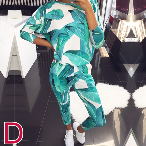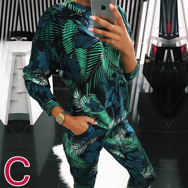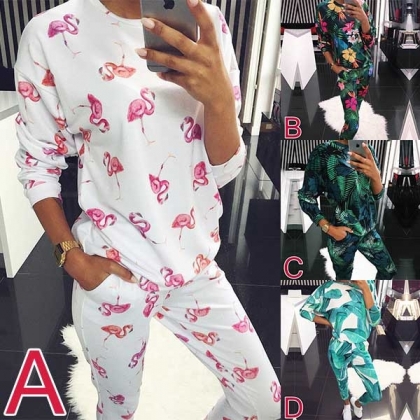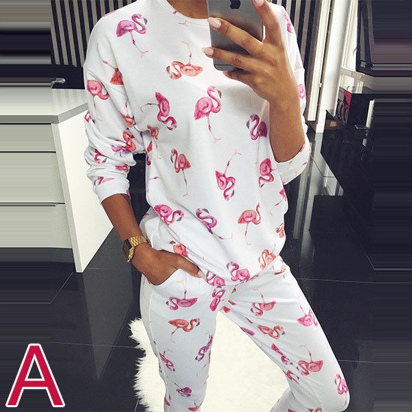 tryckt mönster, inklusive en långärmad tröja med rund hals och en byxa, dess mjuka och andningsbara tyg kan