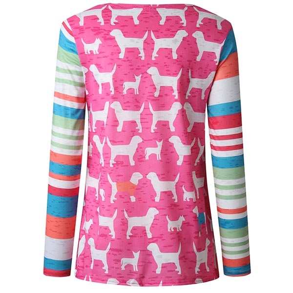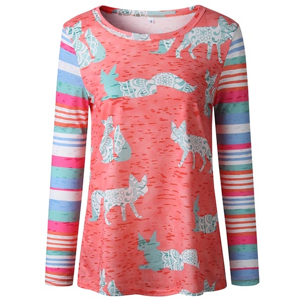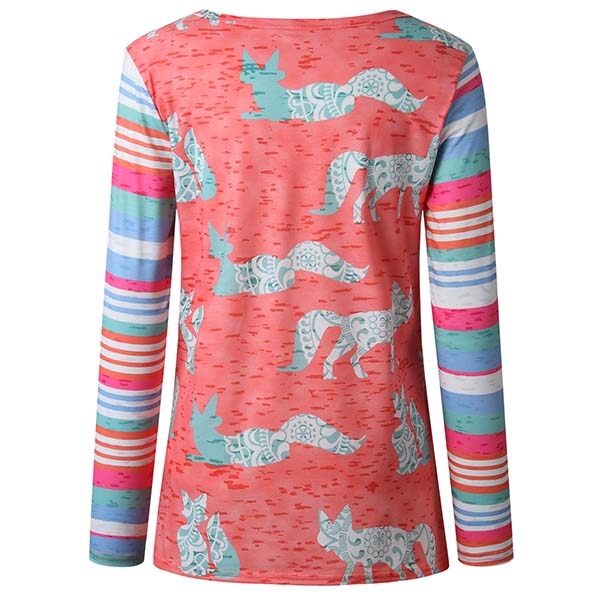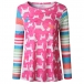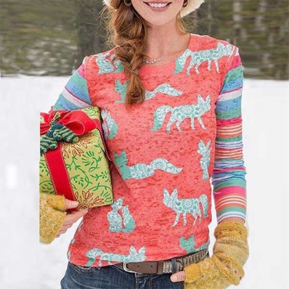 The colorful striped spliced and chic printed pattern design will make this t-shirt look more eye-catching.