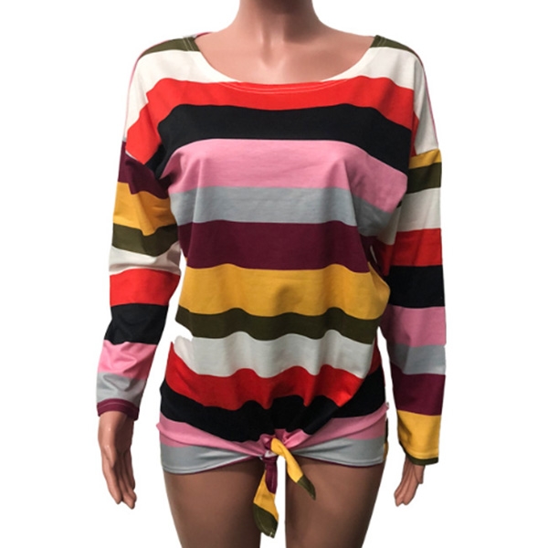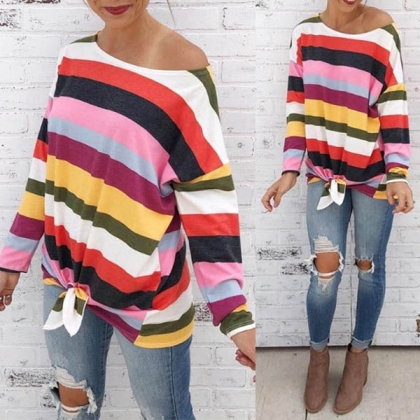 You can enjoy the cozy and style which is offered by this t-shirt. The rainbow striped design makes this