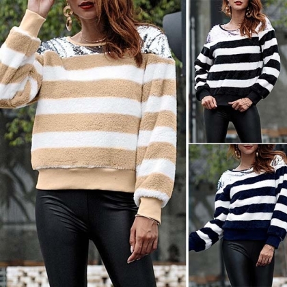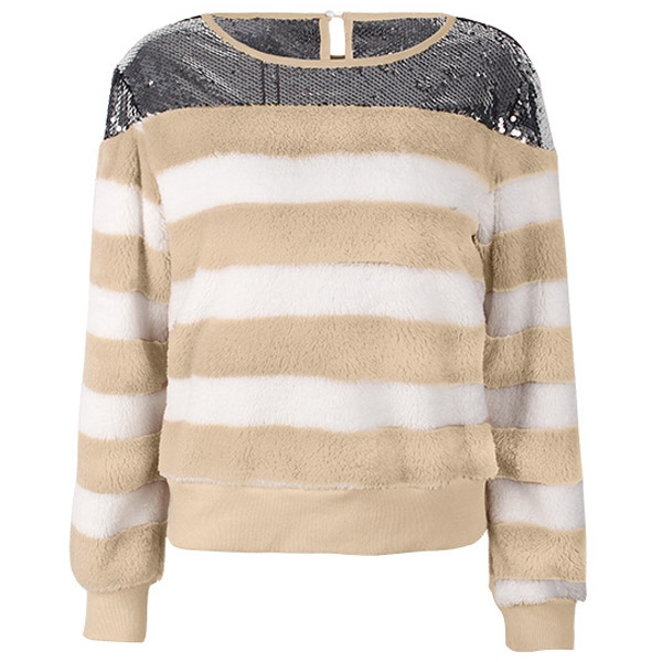 we love this piece! The striped element and sequin details make this piece look so eye-catching