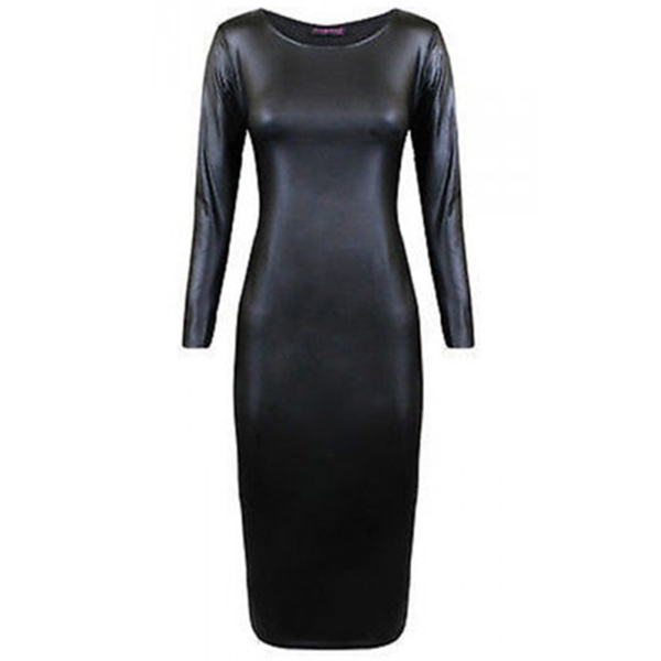 This PU Leather dress comes with a mysterious and flattering black tone,finished with long sleeve,