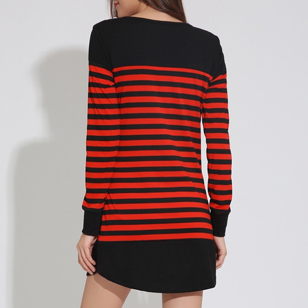 This long sleeve dress is the perfect addition to the cold weather wardrobe ensemble. Designed with striped