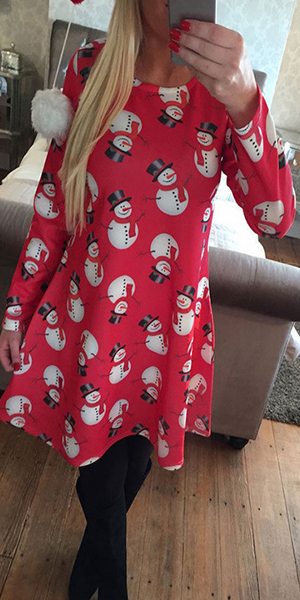 Welcome Christmas arrival with this dress! It features Christmas snowman printed pattern,