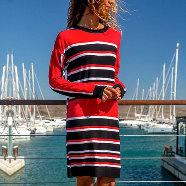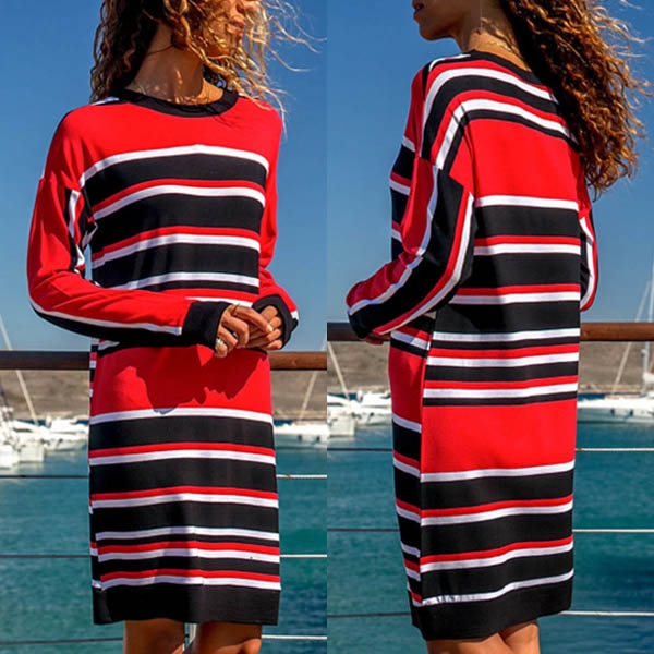 On your lazy days or some rushed mornings,this dress can be your wise choice. The striped element