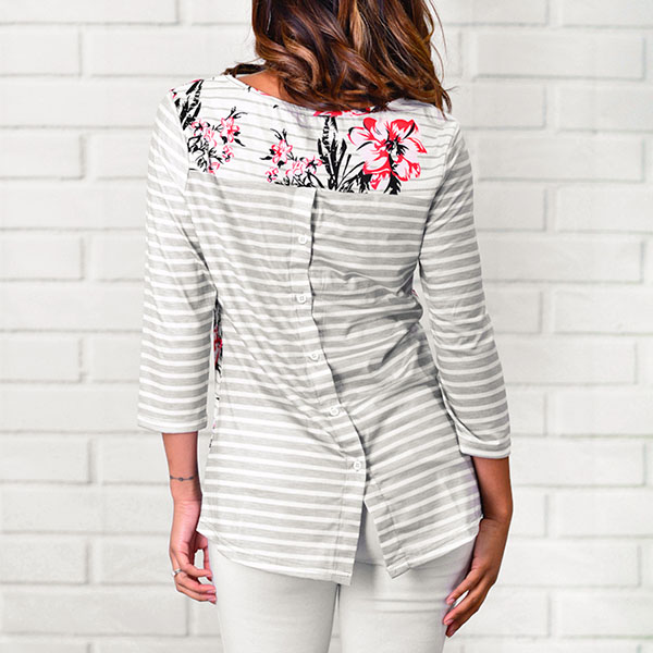 Combines of cozy and style,this t-shirt is worth to have a place in your wardrobe. The striped and printed