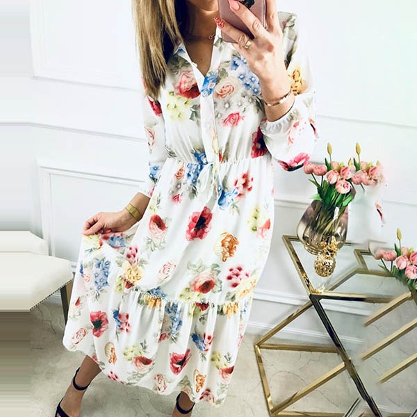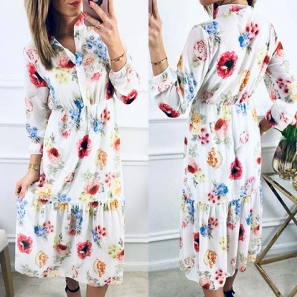 Fashion Long Sleeve Ruffle Hem Printed Dress