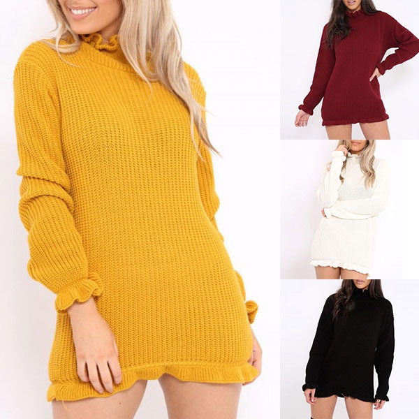 In the spring,autumn and winter,this sweater dress would strike your mind. Comes with a solid color,