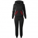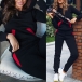 color trim accent for breaking the dull dash on this two piece set, as well as a fitted pants, ribbed trim hem,