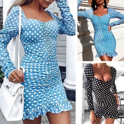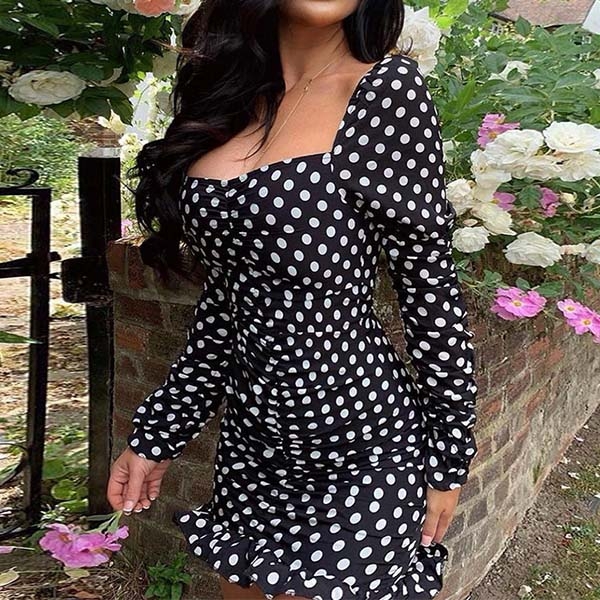 eyes focused on this dress. Dots printed design makes it look so playful and eye-catching,while the